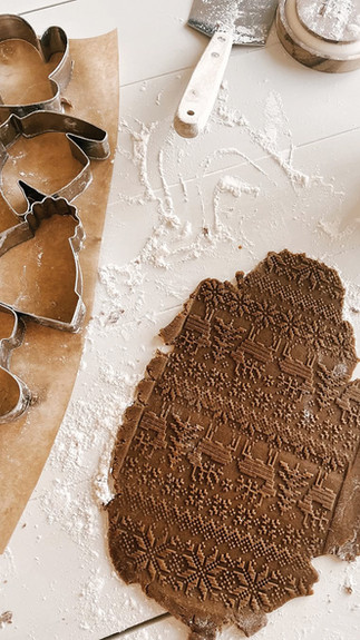 Her kitchen becomes a hub of holiday cheer and sweet scents from such as her grandmother’s spritz cookies and steaming mugs of German mulled wine, a delicious red wine infused with citrus and spices. Classic sugar and gingerbread cookies shaped like cozy sweaters, mittens, and stockings bring sweet memories to life throughout the entire holiday season.